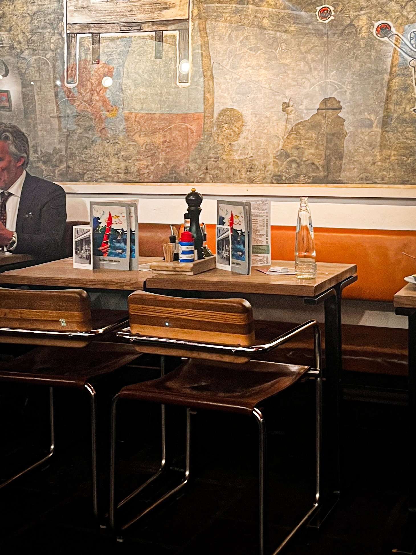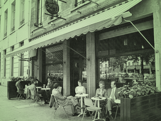 The restaurant opened here in 1968, when Albert Niels (1917–1978) took over the former Café de la Justice and renamed it Au Vieux Saint Martin. He didn’t just open a brasserie, he invested in the space. Together with designer Christophe Gevers, he redesigned the interior using oak, brass and copper. He was also an art lover, and the walls were decorated with artworks. The restaurant name refers to a 16th-century sculpture of Saint Martin, traditionally seen as a protector of the poor.