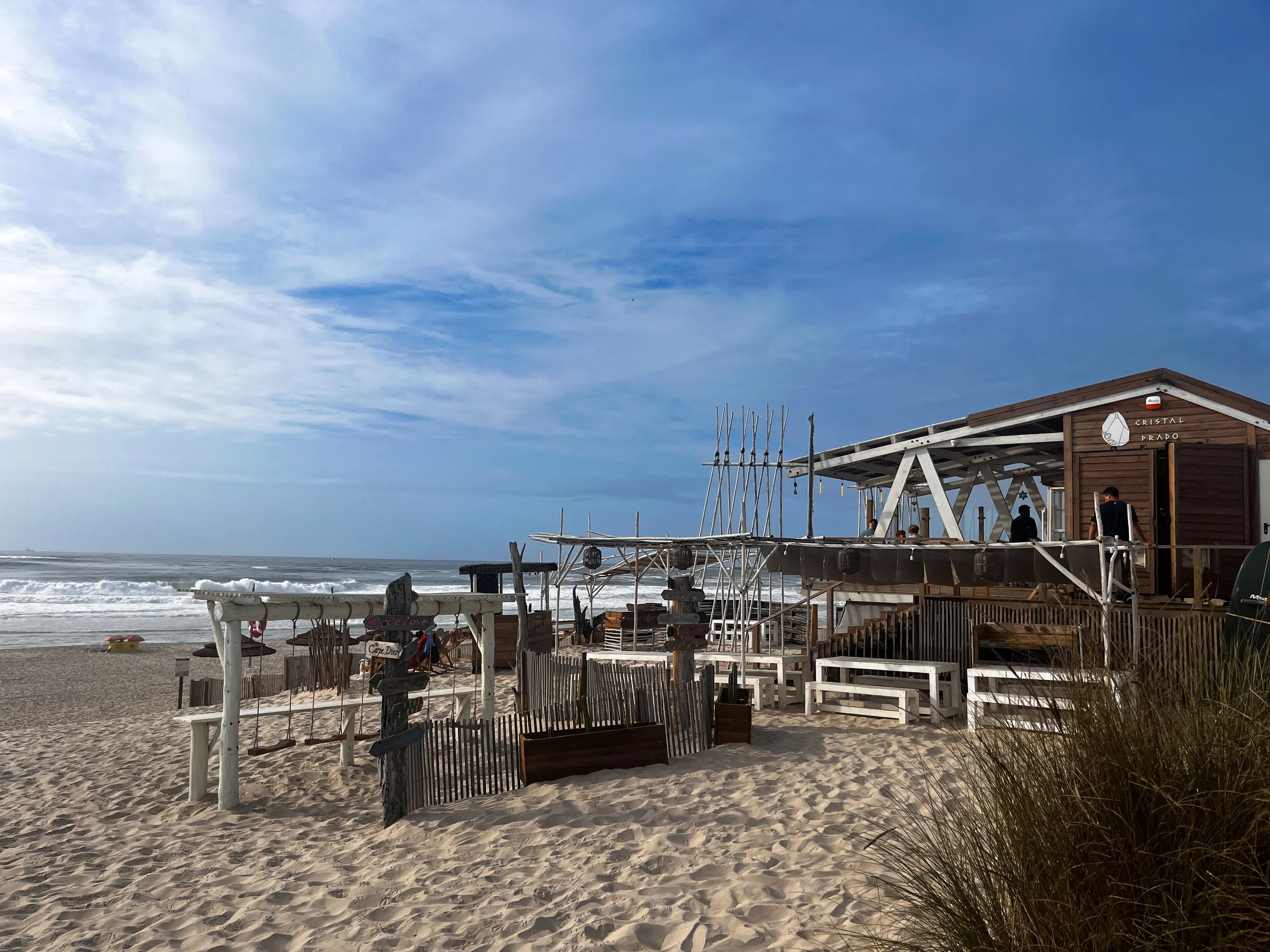 Cristal Prado is the barefoot-chic beach bar on Costa Nova’s ocean side where we stopped for drinks and let the waves do the talking. We didn’t eat here, but the vibe leans inclusive, slow-food and easy: light bites when the kitchen’s on, plus fun, refreshing drinks—the kind of place you order something cold and linger. Think natural wood, rope details, hammocks and swings, a quiet pocket of sand, and a front-row view of the sunset. Simple, soothing, and exactly the pause you want between beach walks.