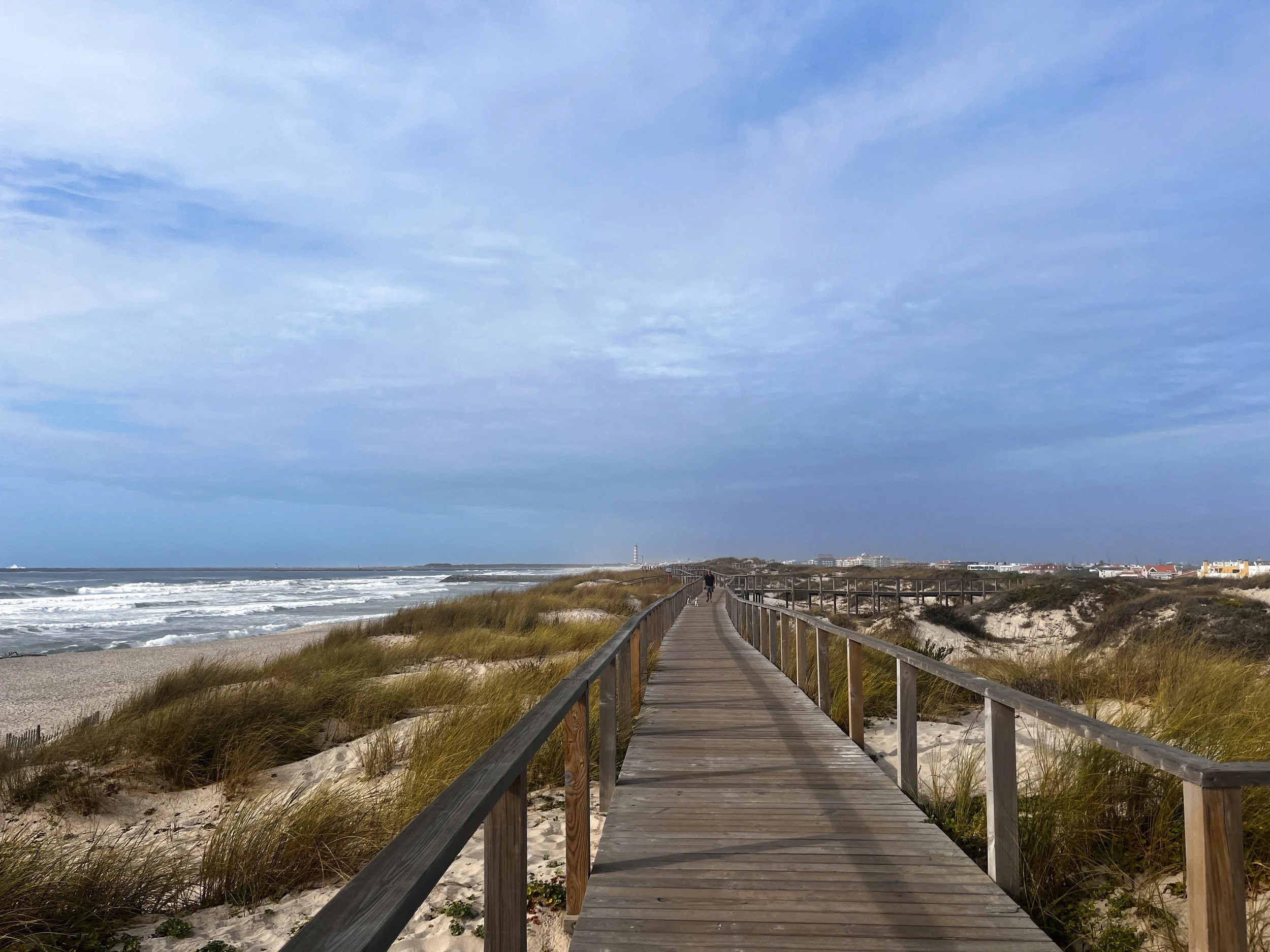 Costa Nova do Prado is much more than its iconic striped houses. Once simple wooden huts, the palheiros were built by fishermen in the 19th century to store their nets and gear. Painted in bold stripes to protect the wood and brighten the shore, they’ve since become part of Portugal’s coastal charm. Today, this strip of land between the lagoon and the sea still feels unspoiled. With sandy beaches stretching for miles and dunes rolling into the horizon, it invites you to slow down with a good book, a glass of crisp vinho verde, and let the sound of the waves carry your worries away.
