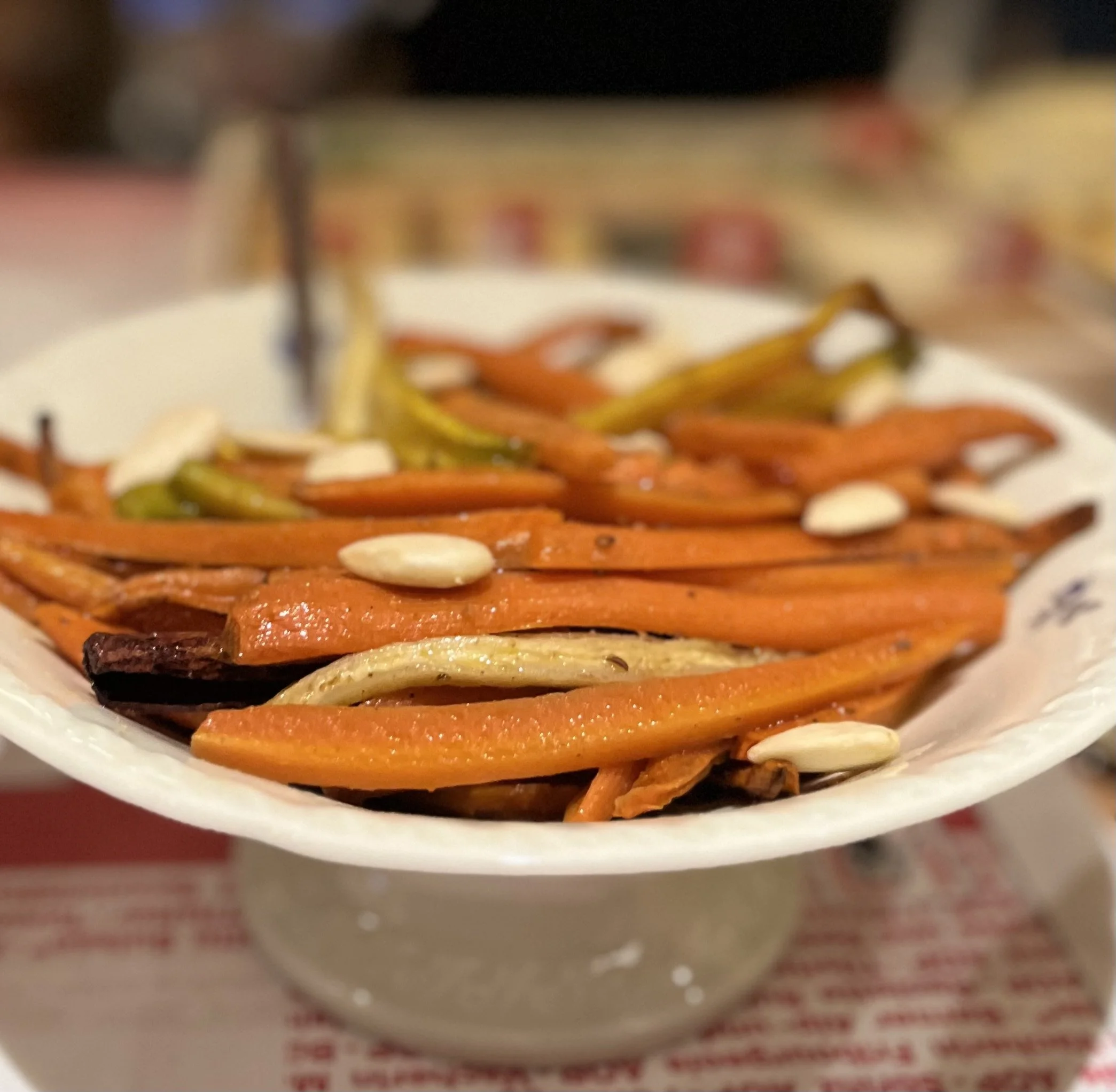 I love roasted vegetables and they tend to really like cheese. Here we had roasted carrots, but really; any roasted veggie will do. Get creative and use some seasonal products.