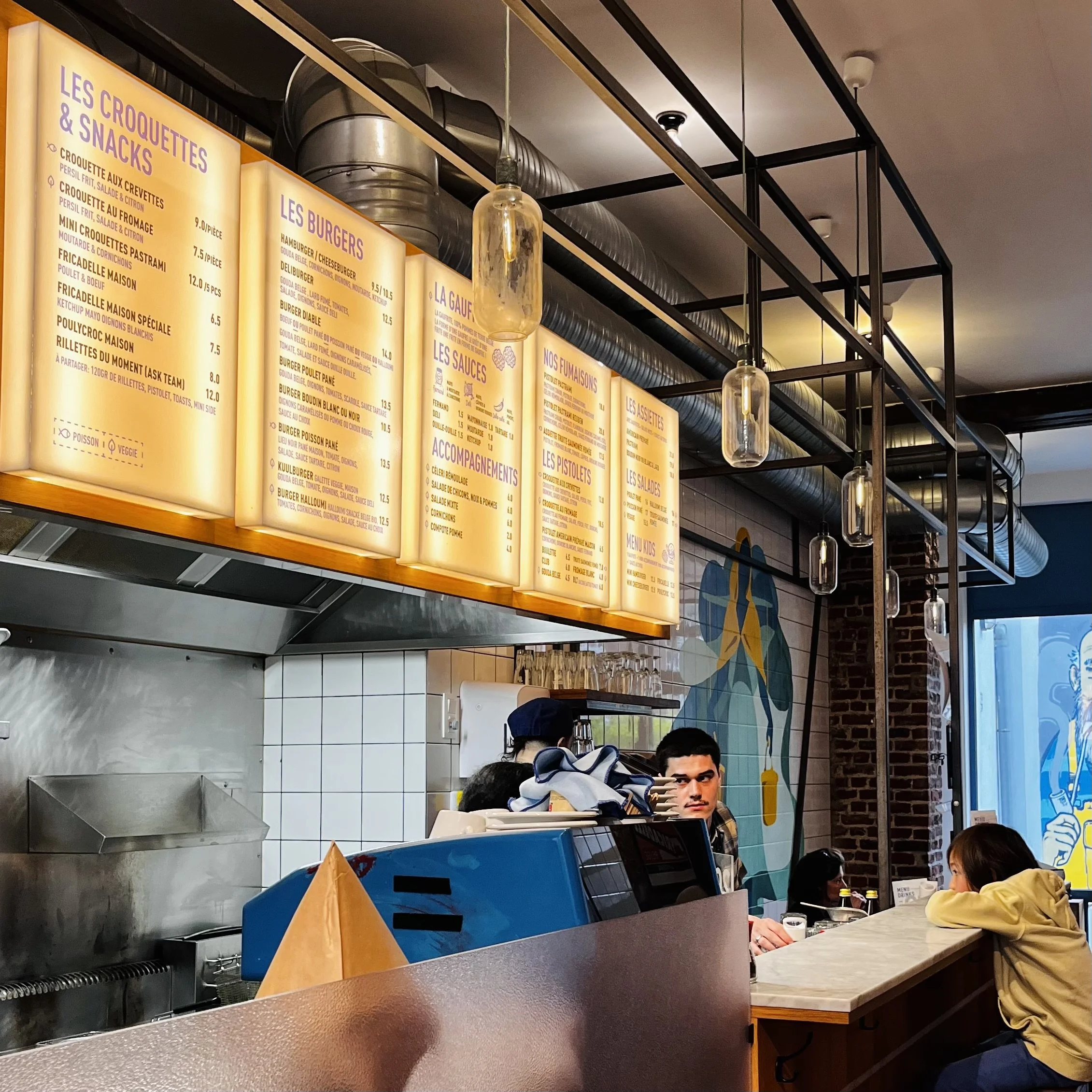 1060 - Fernand Obb is not just about their famous shrimp croquettes. They also serve delicious pastrami, burgers, smoked salmon and vegetarian dishes. A deli style restaurant in Saint-Gilles. No reservations