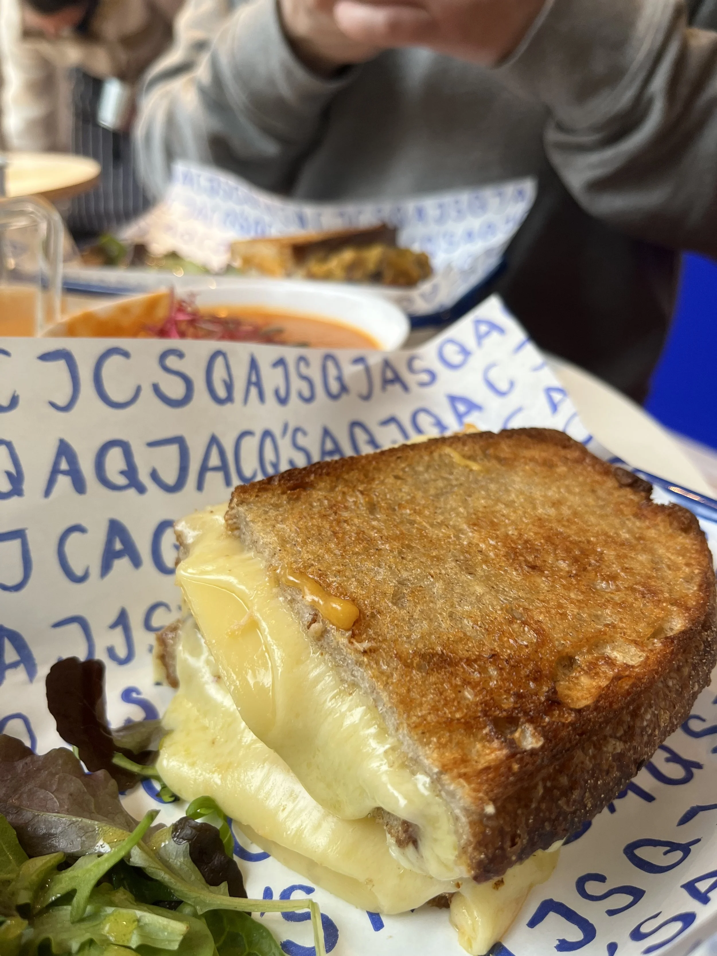 Overflowing grilled cheeses and homemade soups are made with love at Jacq’s Toastery. A grilled cheese sandwich is between 9€ and 15€ and is more than enough as a meal. -